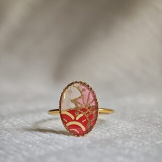Découvrez une bague japonaise faite main en papier traditionnel et résine. Bijou unique, doré à l’or fin, léger et idéal pour un cadeau original.