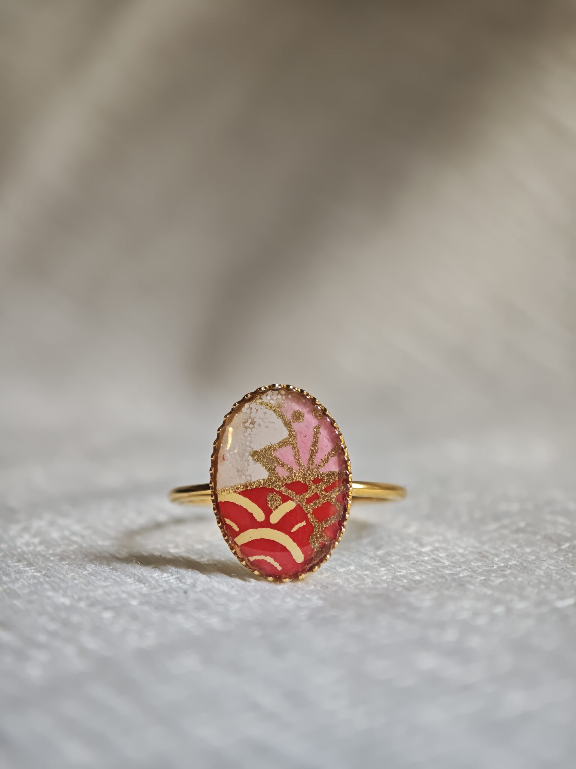 Bague japonaise en papier et résine – création artisanale unique