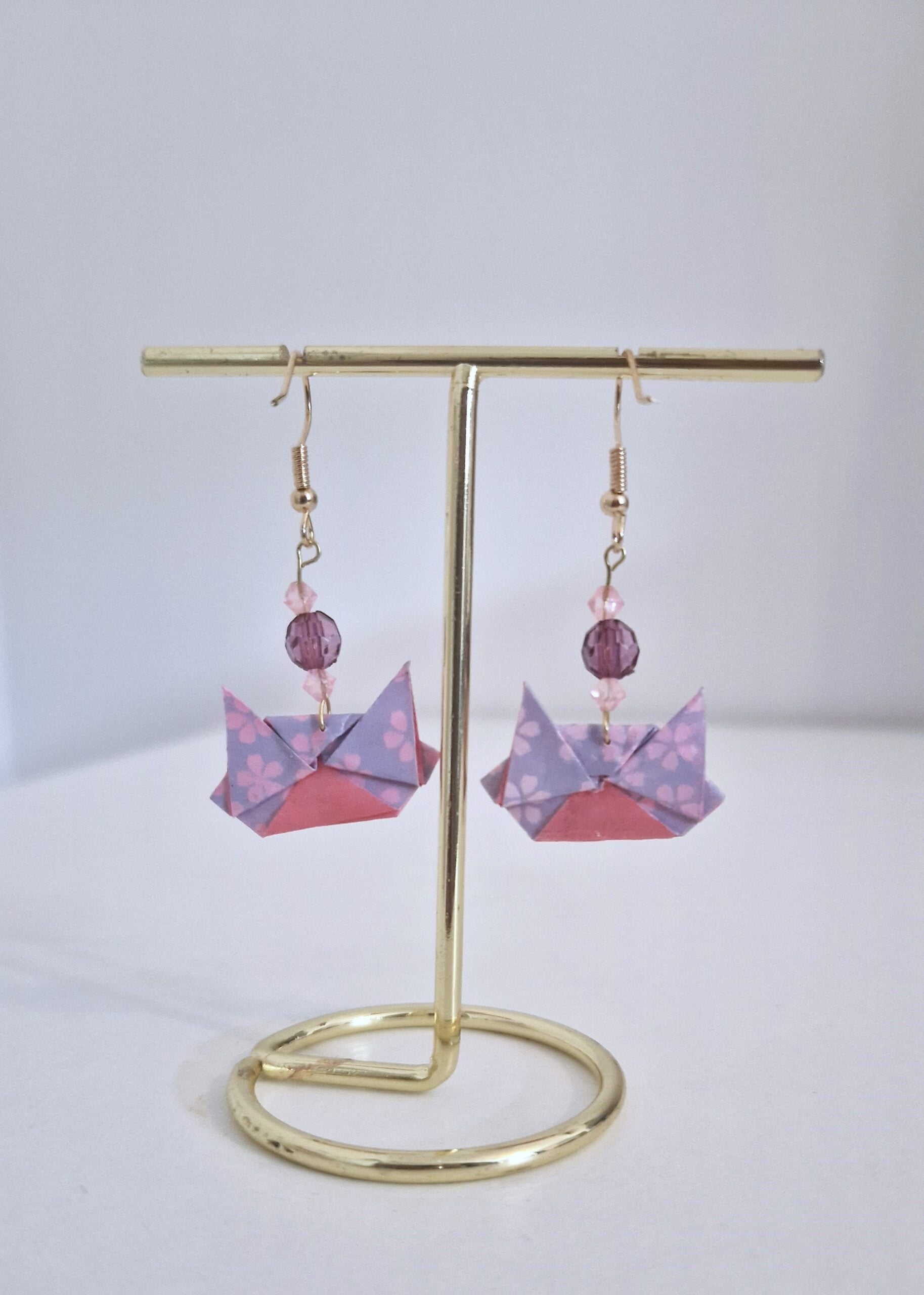 Boucles d’oreilles Chat Origami Kaito Fleurs de Sakura