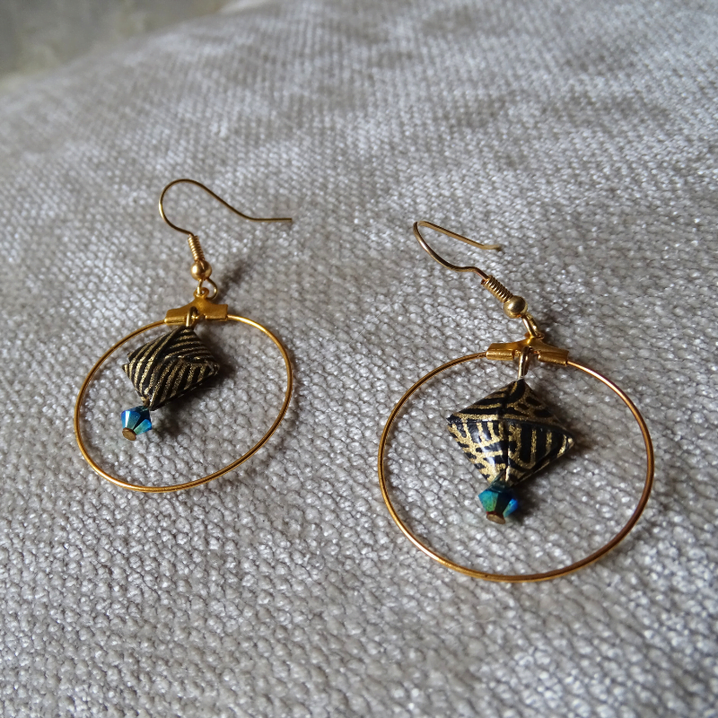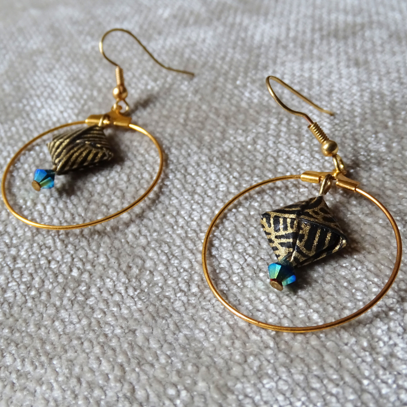 Entretien : Chaque pliage provient d’un carré de papier et pour assurer leur longévité, plusieurs couches de vernis les protègent de l’humidité et du temps. Notez cependant qu’il est recommandé de les retirer avant de prendre une douche. En raison de sa délicatesse, ces bijoux sont à conserver avec soin dans leur pochon / boîte et de les retirer avant de dormir.
