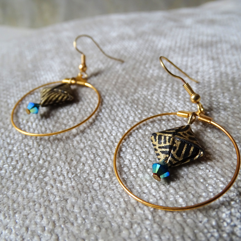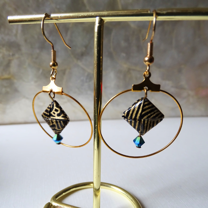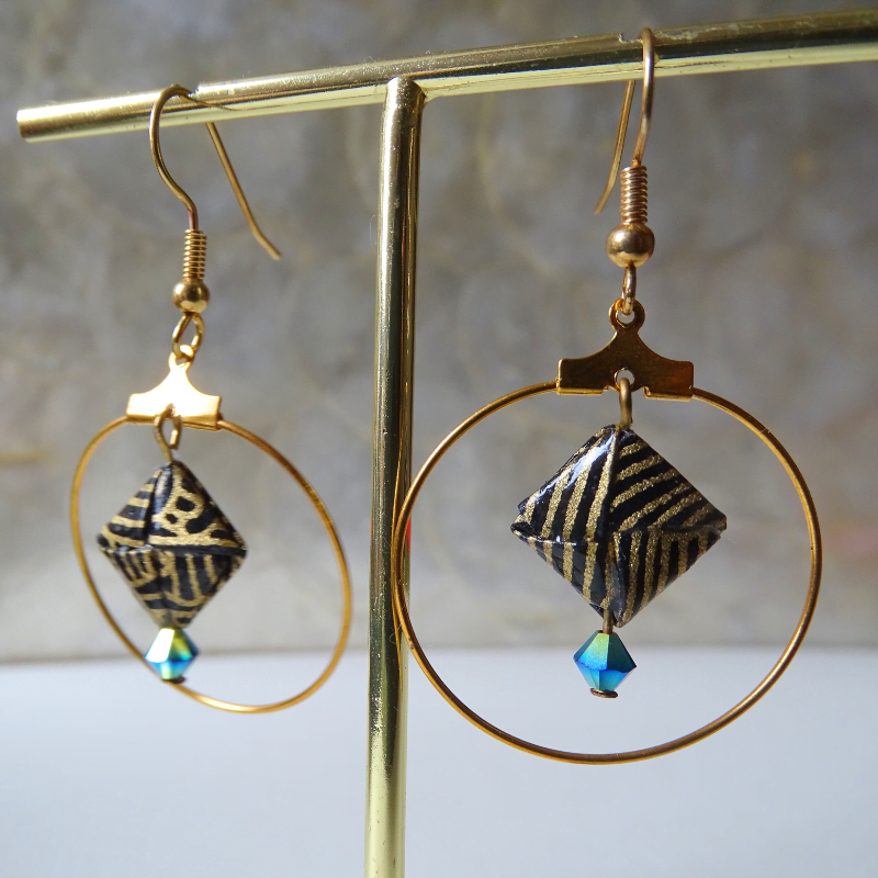 Matériaux : Les crochets sont en laiton et la breloque en métal. Le papier Washi est vernis.