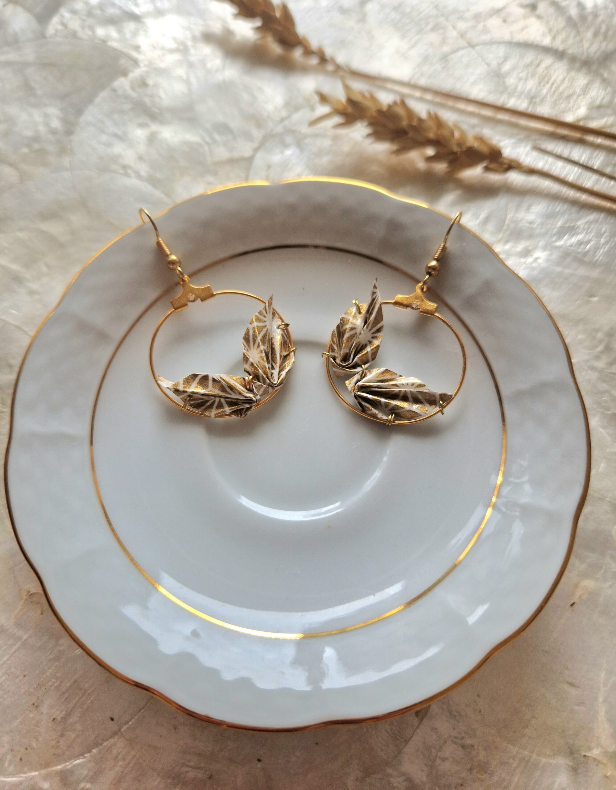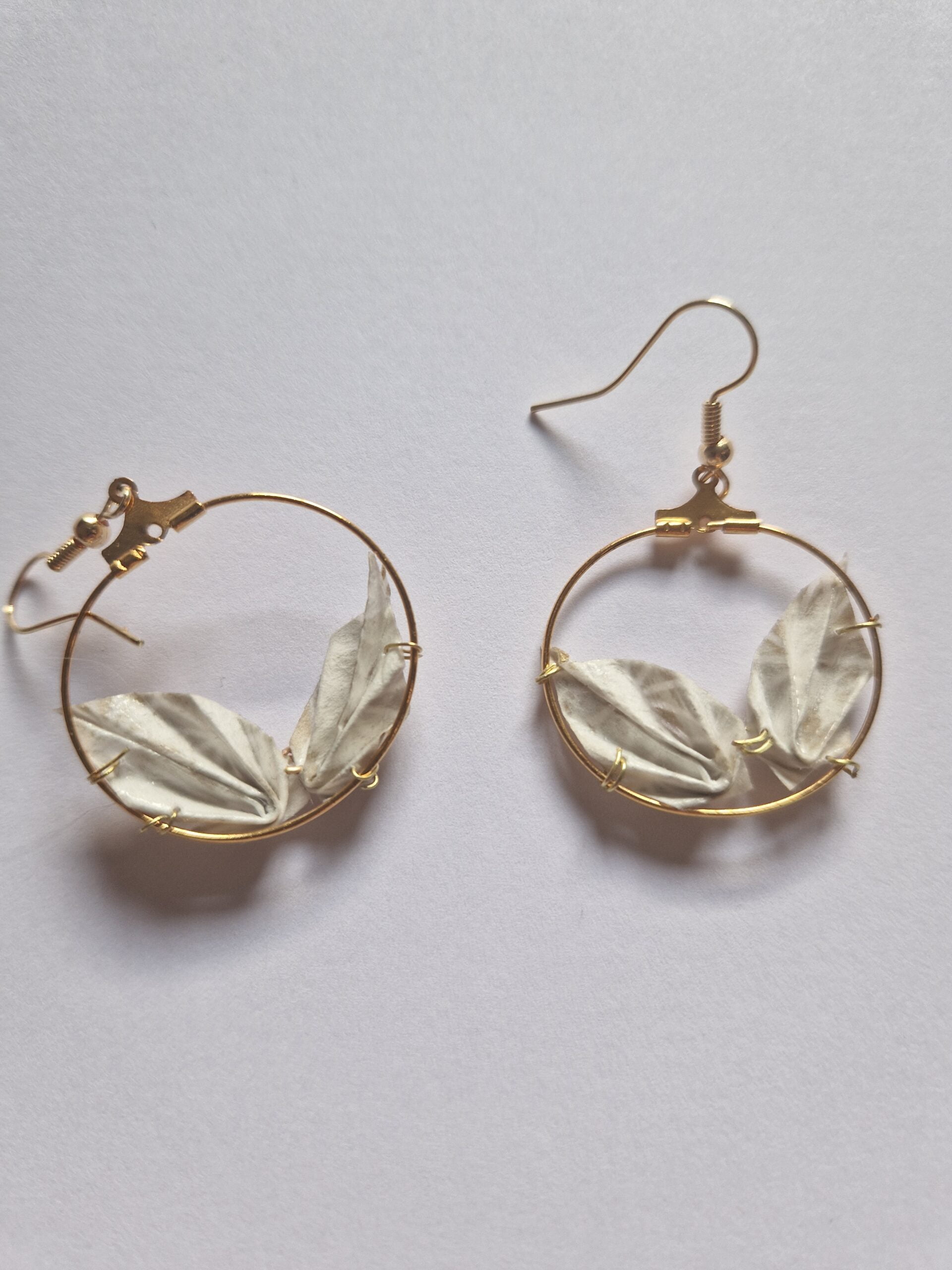 Entretien : Chaque pliage provient d’un carré de papier et pour assurer leur longévité, plusieurs couches de vernis les protègent de l’humidité et du temps. Notez cependant qu’il est recommandé de les retirer avant de prendre une douche. En raison de sa délicatesse, ces bijoux sont à conserver avec soin dans leur pochon / boîte et de les retirer avant de dormir.
