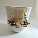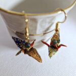 Ces boucles d’oreilles grue perle agate s’inspirent de l’origami et de la symbolique de la grue, symbole de longévité, de chance et de bonheur au Japon.