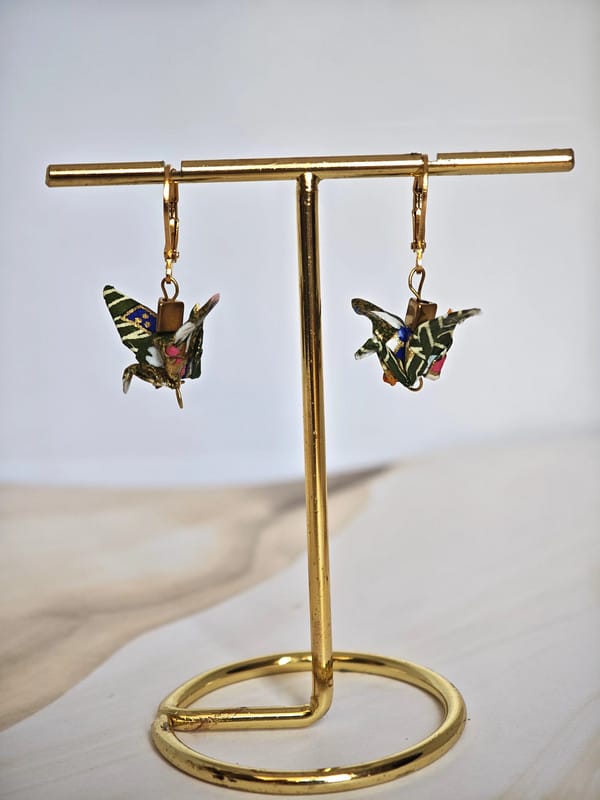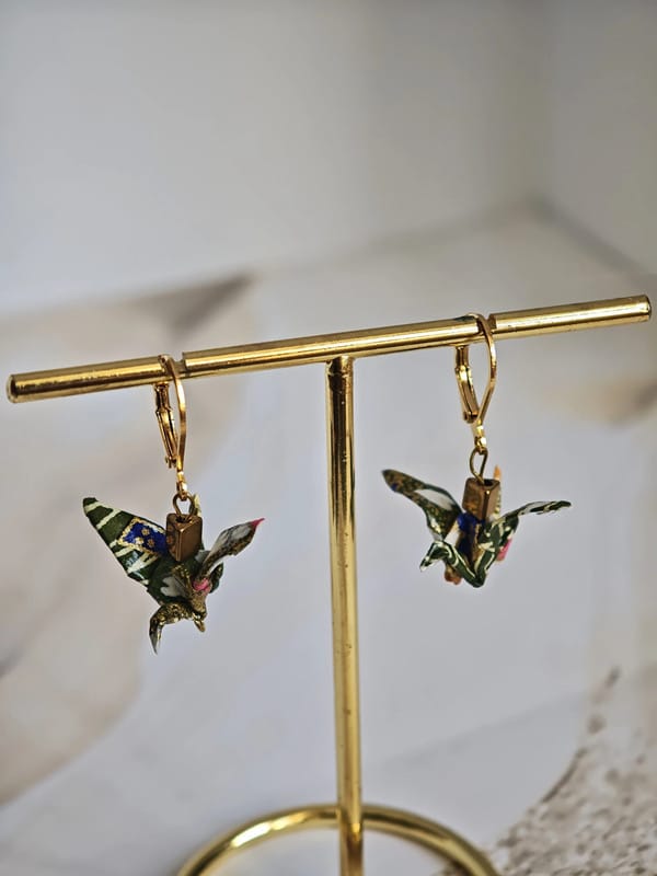 Boucles d’oreilles grue japonaise – Origami en papier washi fait main