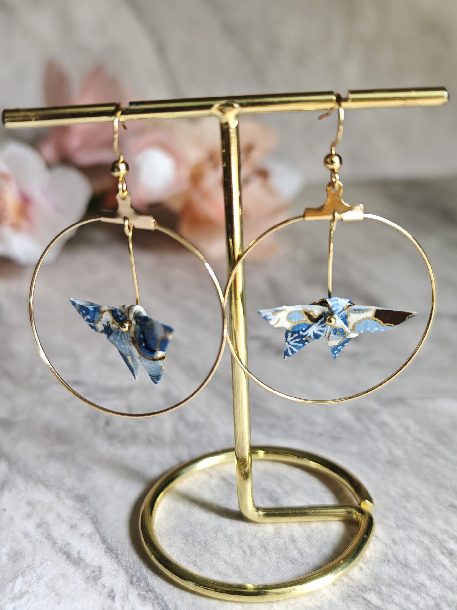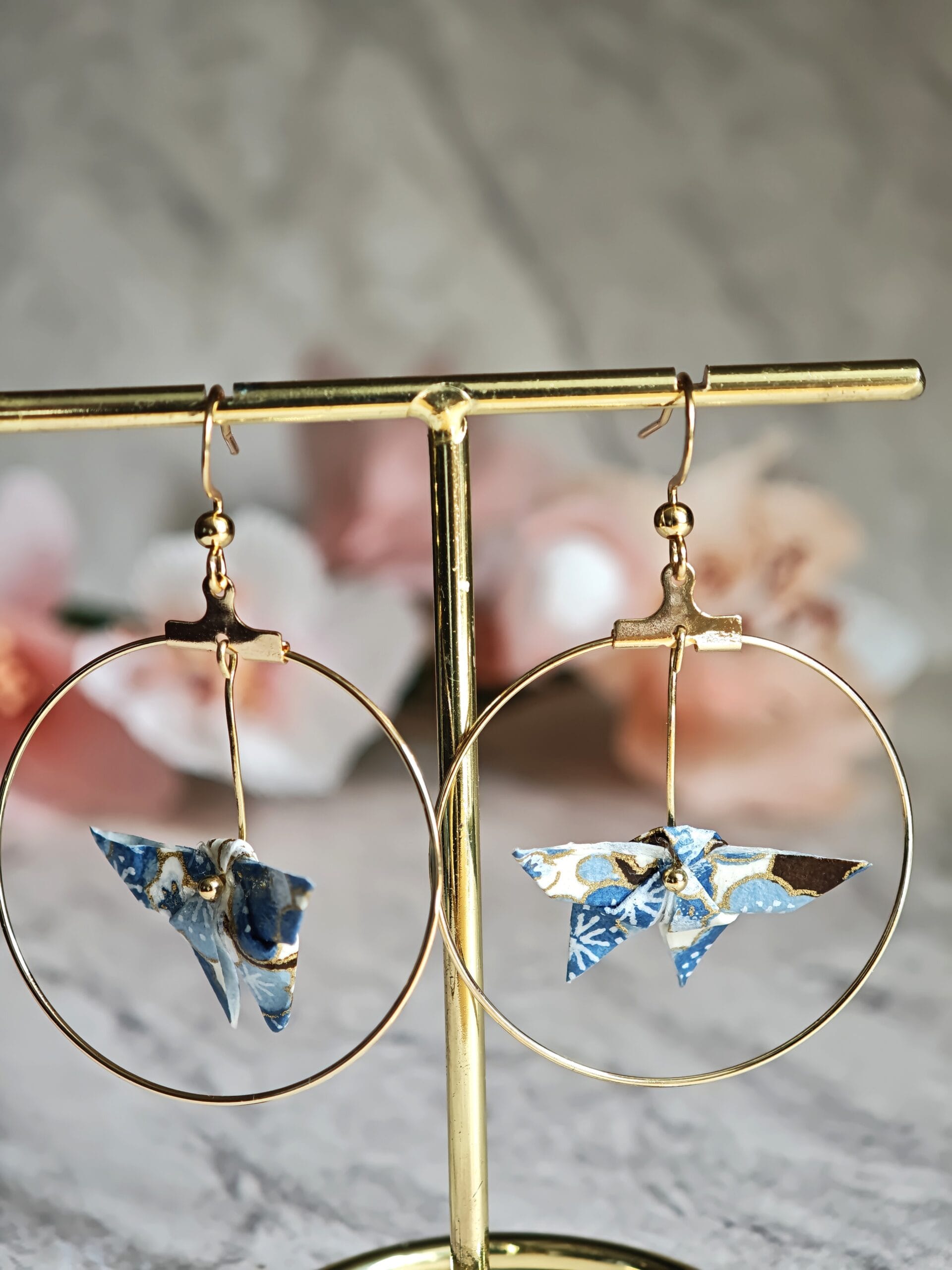 Entretien : Chaque pliage provient d’un carré de papier et pour assurer leur longévité, plusieurs couches de vernis les protègent de l’humidité et du temps. Notez cependant qu’il est recommandé de les retirer avant de prendre une douche. En raison de sa délicatesse, ces bijoux sont à conserver avec soin dans leur pochon / boîte et de les retirer avant de dormir.