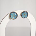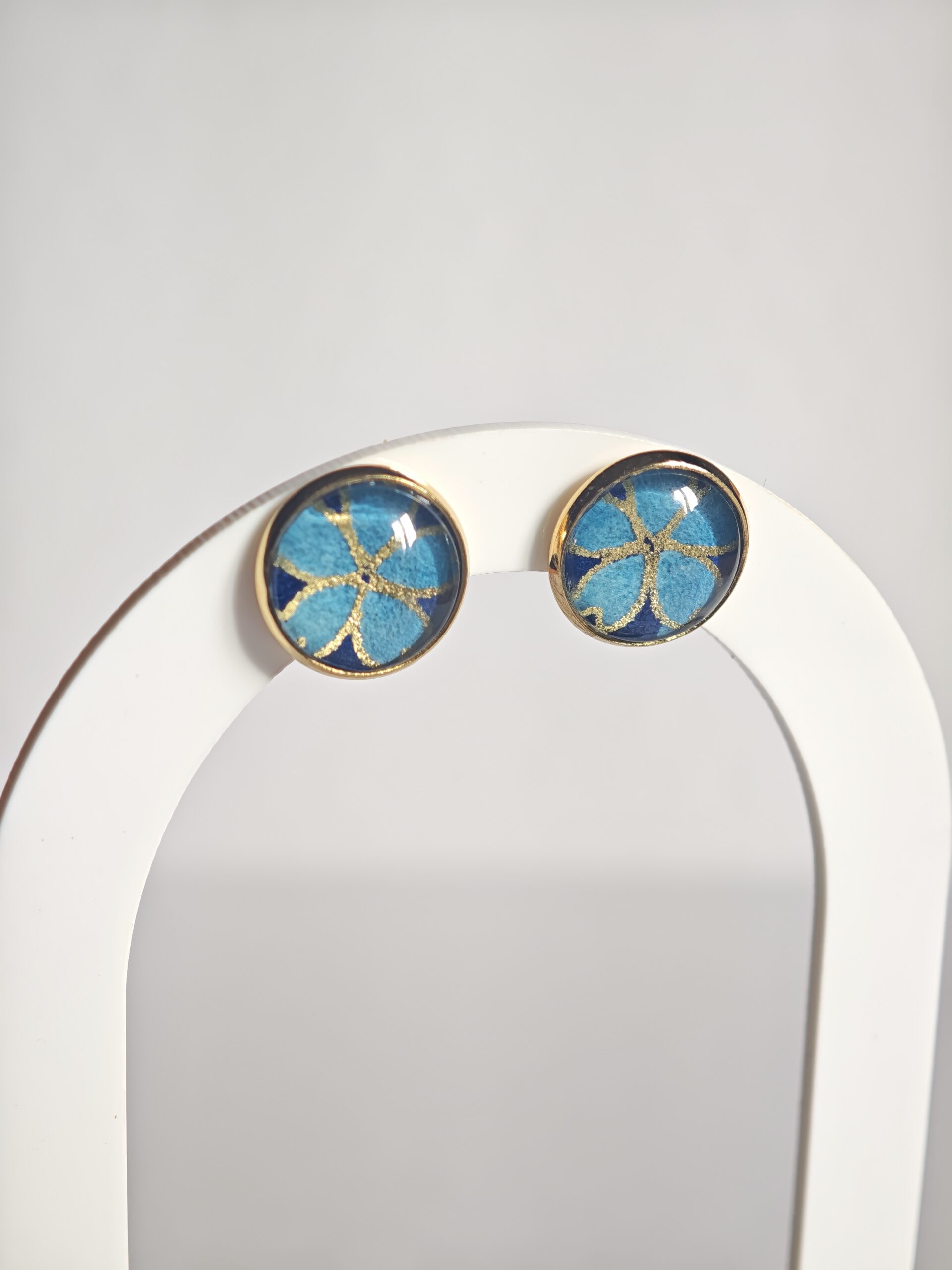 Chaque bijou est fabriqué à la main à partir d’un véritable papier japonais aux motifs floraux bleus, soigneusement sélectionné puis protégé sous un cabochon pour révéler toute la finesse du motif.